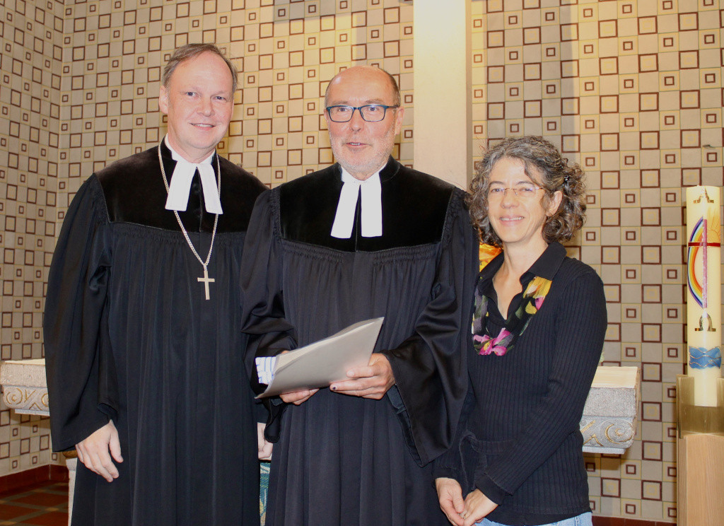 Sowohl im Gottesdienst als auch beim anschließenden Fest wurde auch an die schwerste Zeit im Leben Thomas Schweizers erinnert: seine erste Ehefrau Bettina starb vor 15 Jahren. Gegenseitige Offenheit und Vertrauen halfen Thomas Schweizer und den drei Kindern durch diese Zeit, Gemeinschaft in der Gemeinde bekam eine weitere Bedeutung. Und so freute man sich auch gemeinsam, als wieder eine Pfarrfrau ins Pfarrhaus zog: Martina Schweizer. Vertrauensfrau Manuela Weber verabschiedete mit Martina Schweizer eine kompetente, herzliche und zuverlässige Pfarramtssekretärin. Sie werde vor allem aber auch als Mensch, Freundin und Wegbegleiterin fehlen.